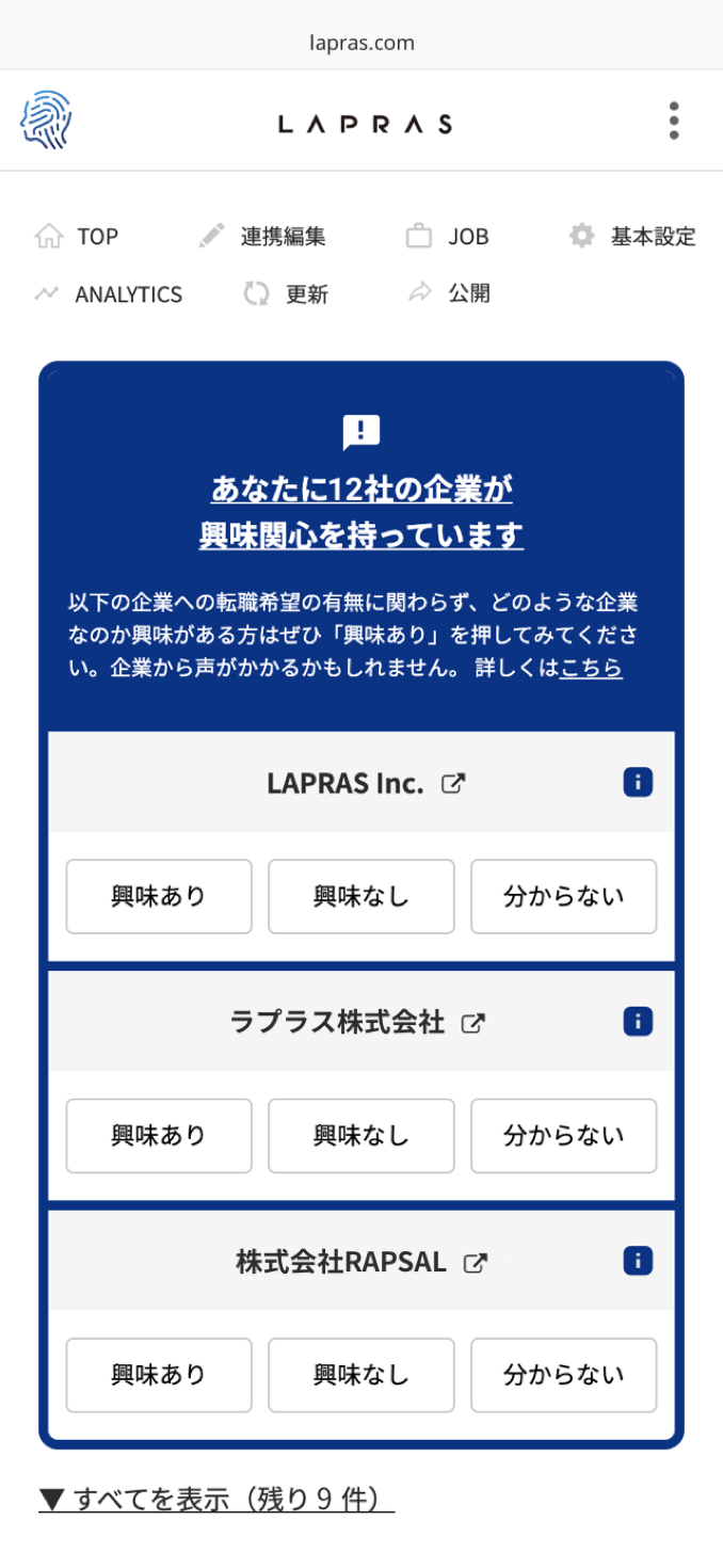 企業があなたに興味を持ったことを知ることができます。ボタンをクリックして、あなたの意思を伝えましょう